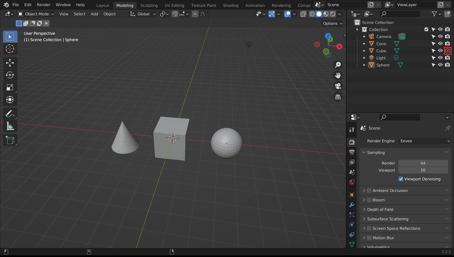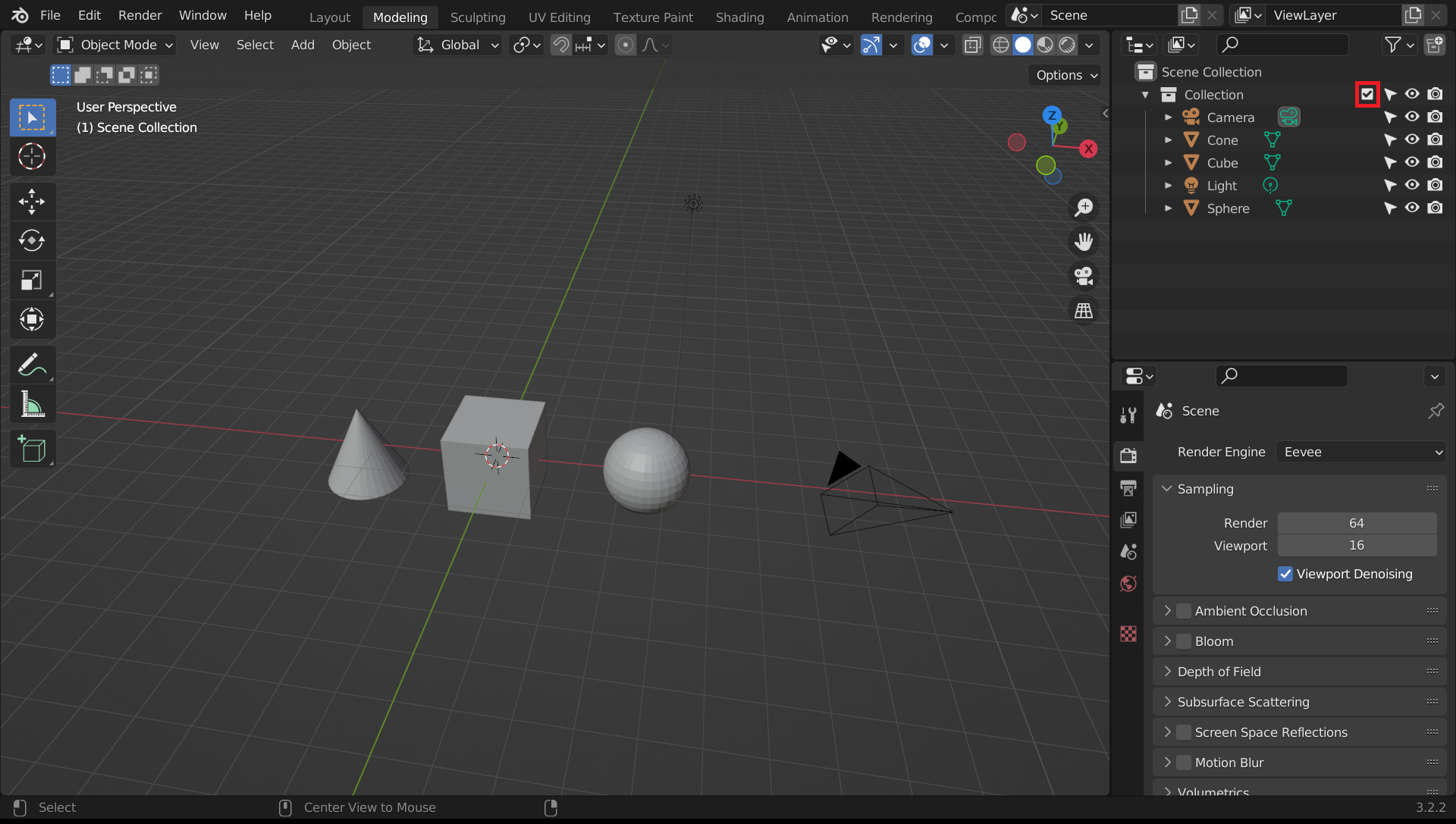 위에서 보다시피 Cube를 숨겨도 렌더링 결과물에서는 숨겨지지 않는 것을 볼 수 있습니다.